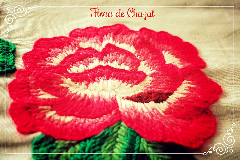 Hoy trate de aproximarme y en un lienzo comun borde mis peonias con lana, y van quedanso asi, me imagino que la pieza, finalmente sera una blusa.